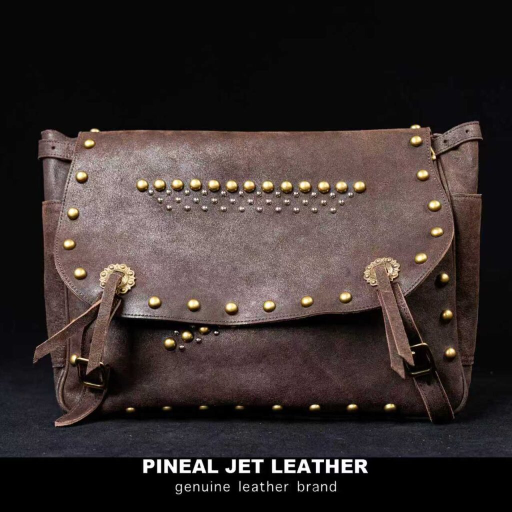 复古风个性铆钉男女同款信封包茶芯油蜡马皮单肩斜挎邮差包